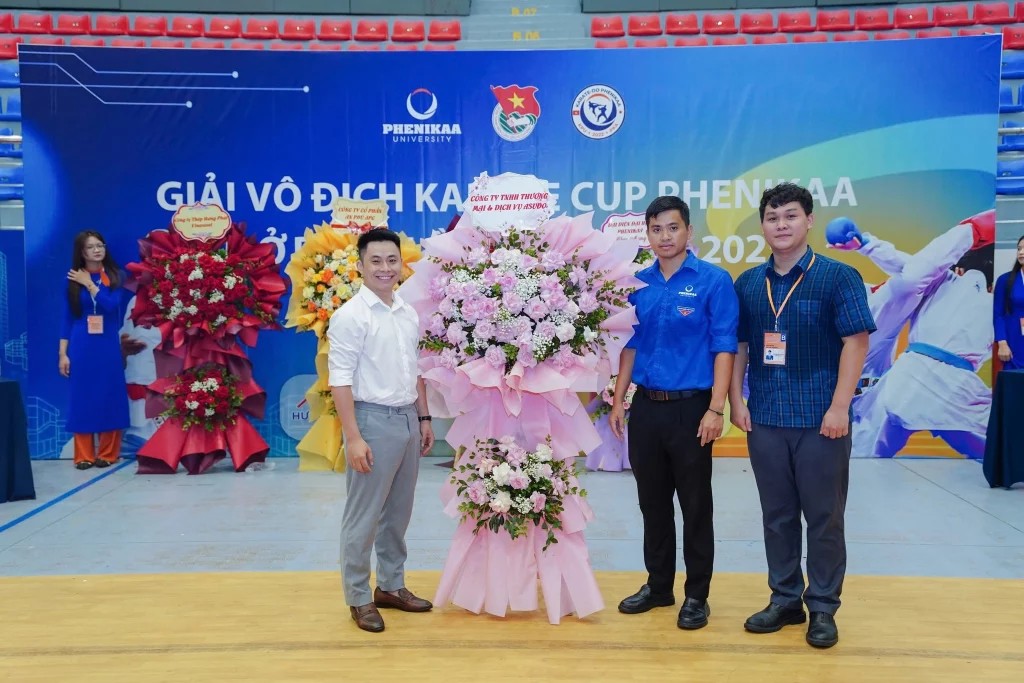 Tại buổi lễ, Ông Bùi Nam Sơn đã đại diện công ty lên tặng hoa và gửi lời chúc tốt đẹp nhất đến Ban Tổ Chức (BTC) giải đấu, đồng thời chụp ảnh lưu niệm cùng các lãnh đạo, trọng tài – những người đóng vai trò quan trọng trong việc đảm bảo tính công bằng và chuyên nghiệp của giải.